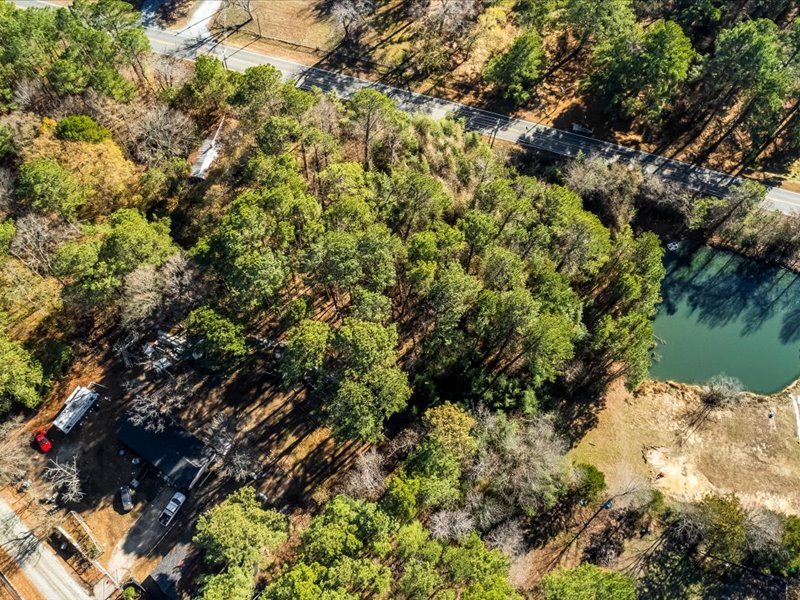 The property includes an existing former store structure that must be fully demolished. The structure has not been maintained and is being conveyed as-is, for teardown. The rear portion of the lot is wooded.